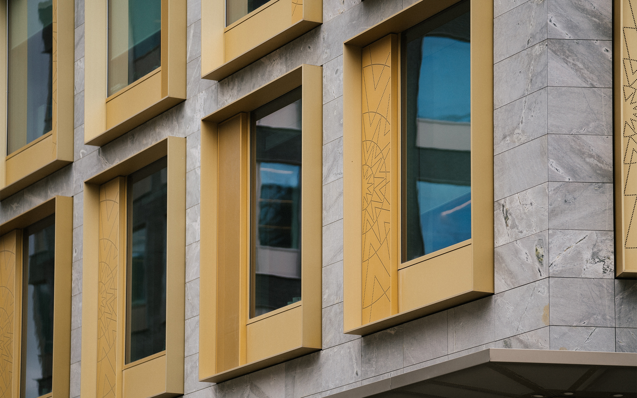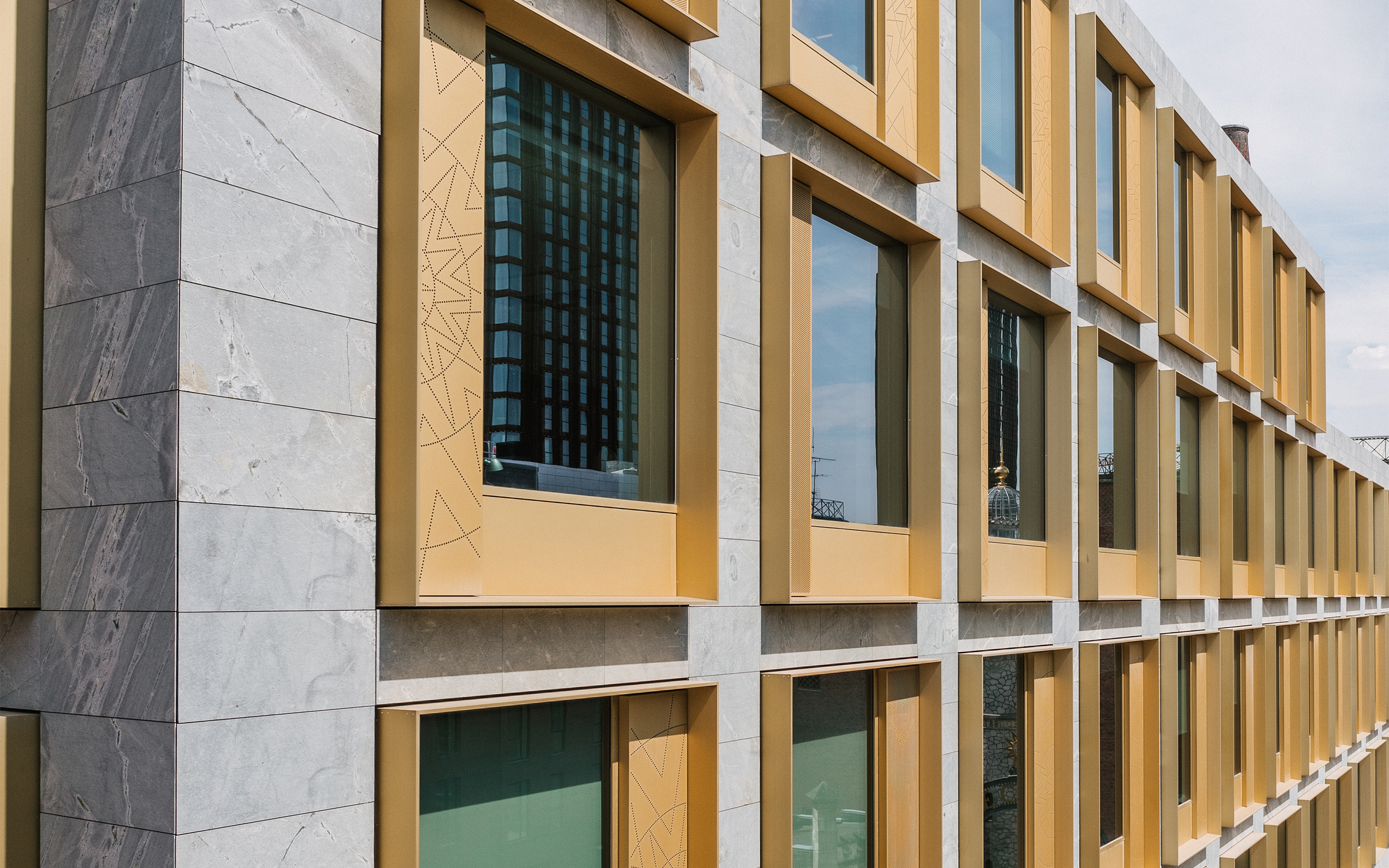 Erhvervsbygning i 5 etager med detail i stueplan.