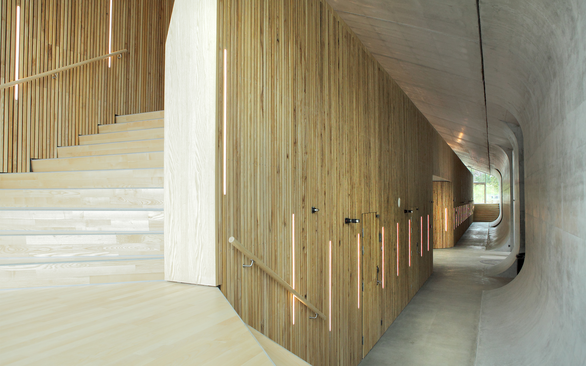 Projektet er tegnet af arkitektfirmaet BIG og indeholder flere spændende arkitektoniske løsninger, blandt andet in situ-støbte betonmure med afrundet bund og top.