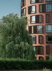 En cirkulær bygning på ti etager placeret langs Jagtvej og to lavere bygninger i henholdsvis to og tre etager blev opført i nybyggeri. Den runde bygning rummer 8 boliger på hver etage. Adgang til boligerne i den runde bygning sker enten via trapperum eller elevatortårn i midten af tårnet. I stueetagen er der indrettet fælleslokale.