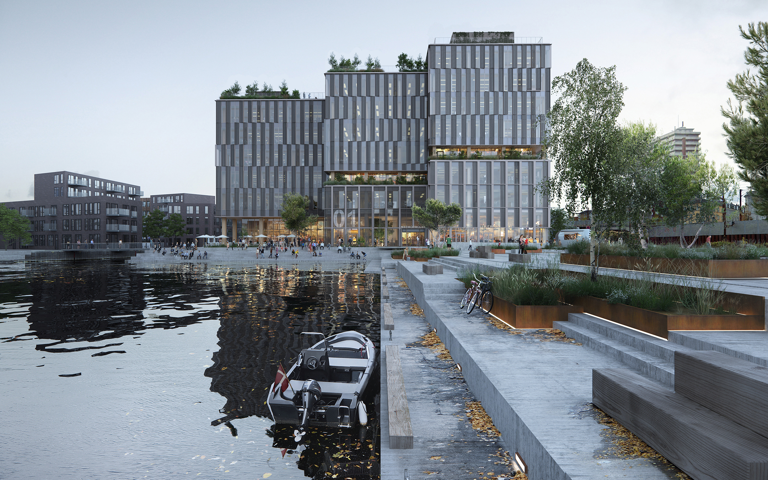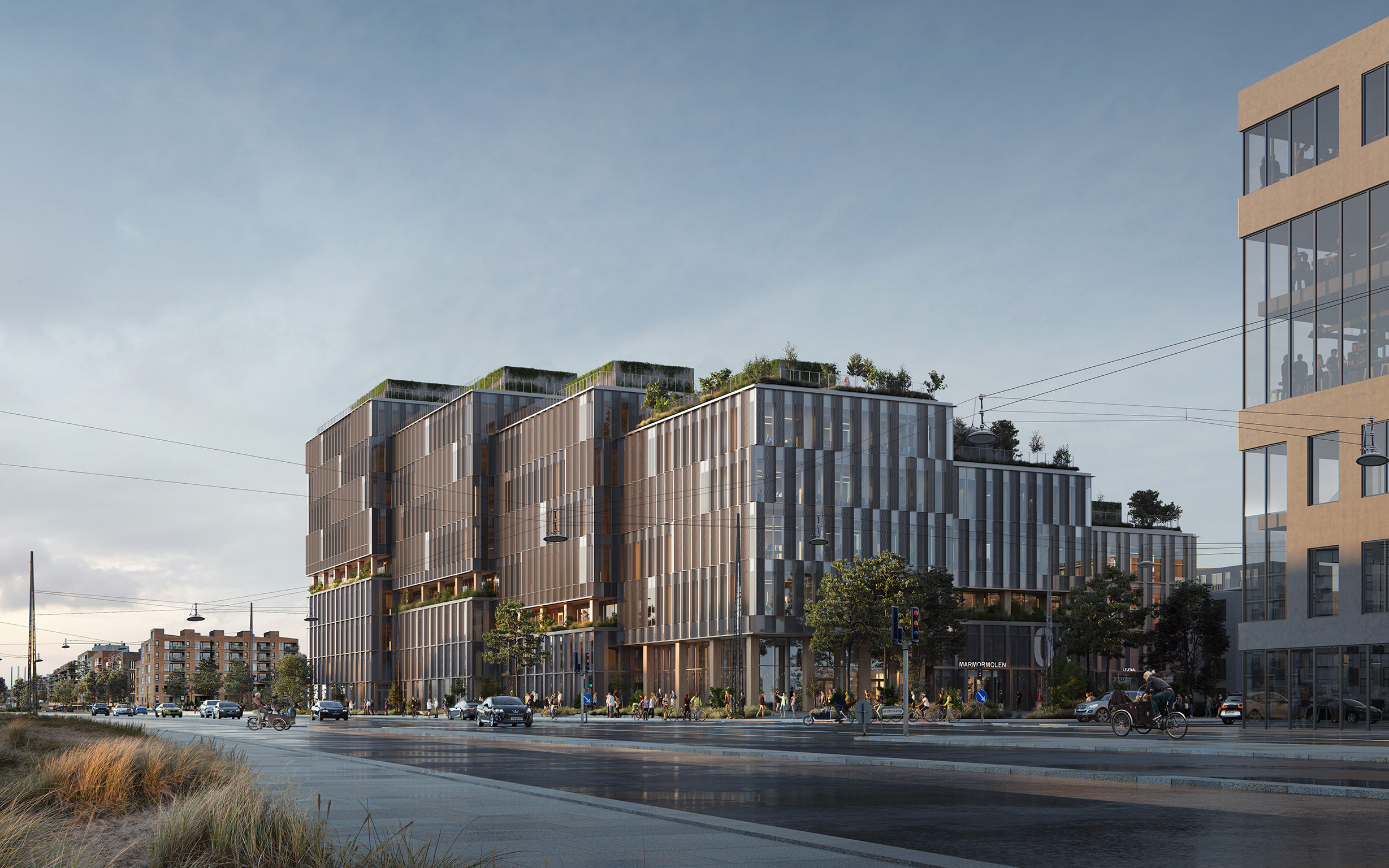 Marmormolen skal være et kontorbyggeri og flerbrugerhus. Bygningens stueetage bliver åben og indbydende med torvehal og en kantine, der efter normal arbejdstid bliver til en offentlig restaurant. Med den unikke placering, dér hvor Nordhavn møder Østerbro, danner Marmormolen fælles rum, der inviterer områdets beboere indenfor og skaber liv.