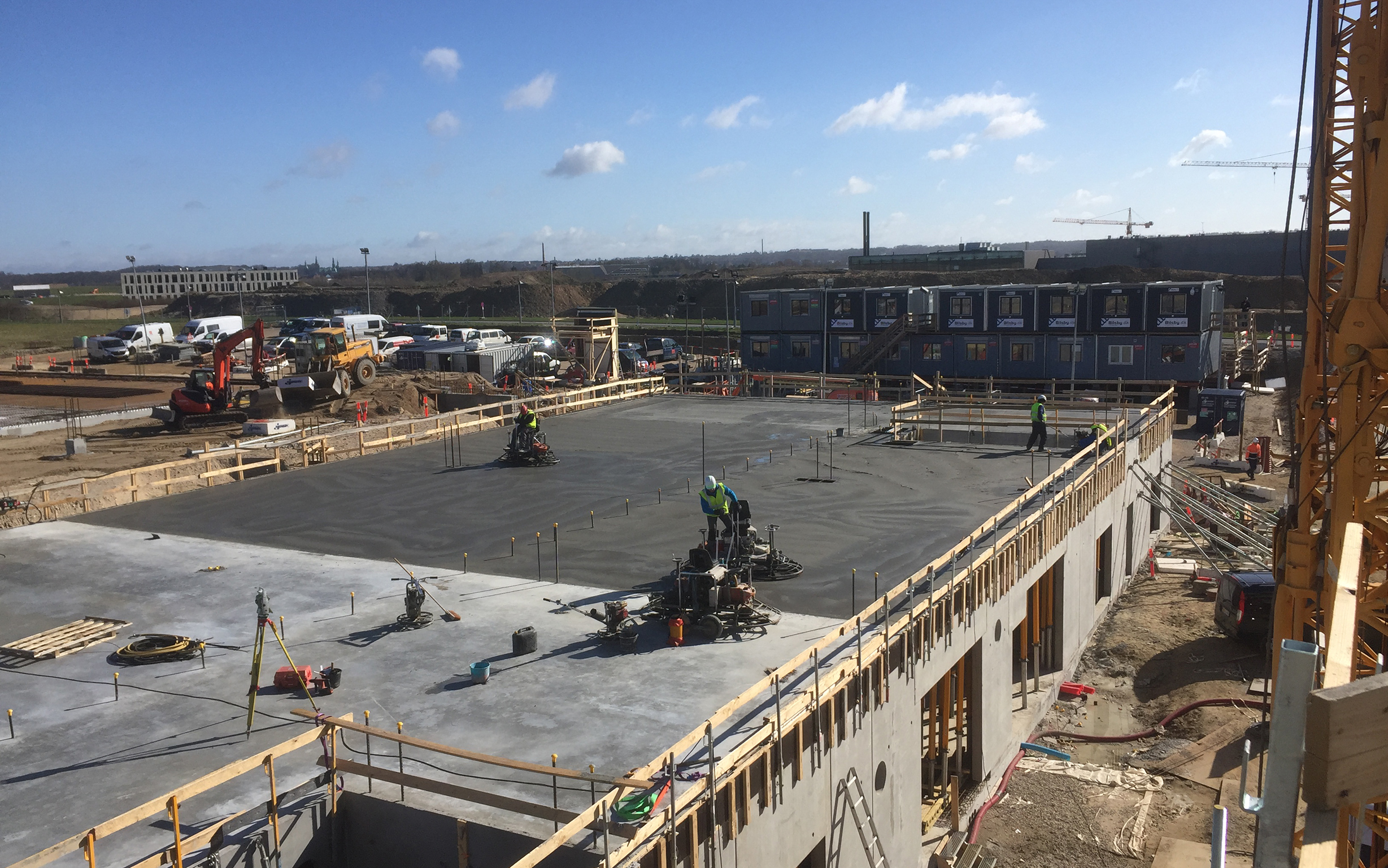 Byggeriet er udført i storentreprise, hvor LM Byg har stået for råhuset samt koordinering af jordarbejder, kloak, membraner og stålarbejder.