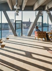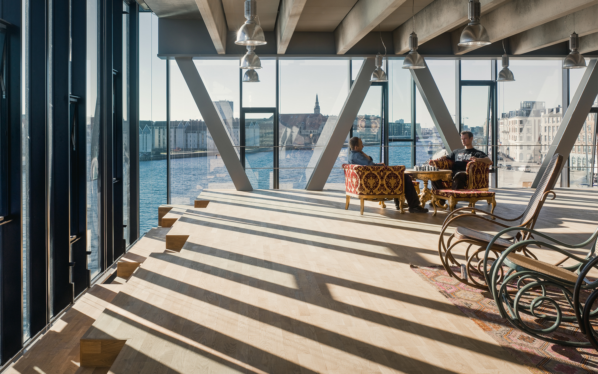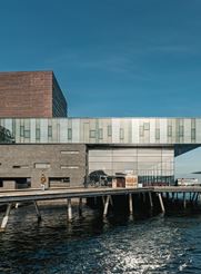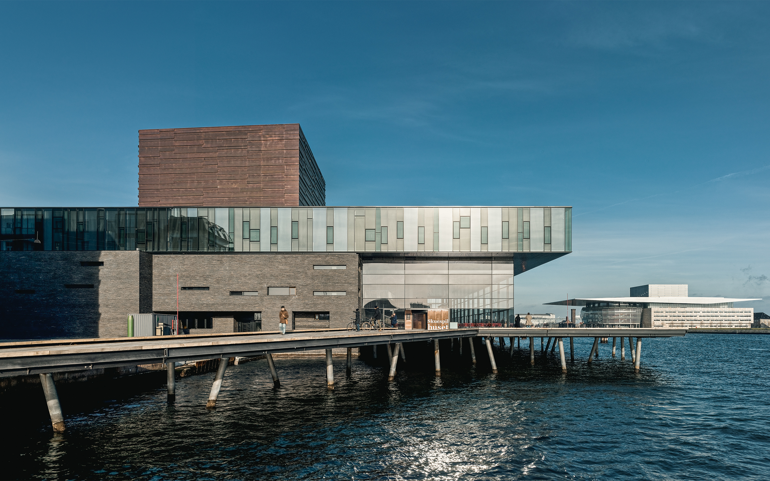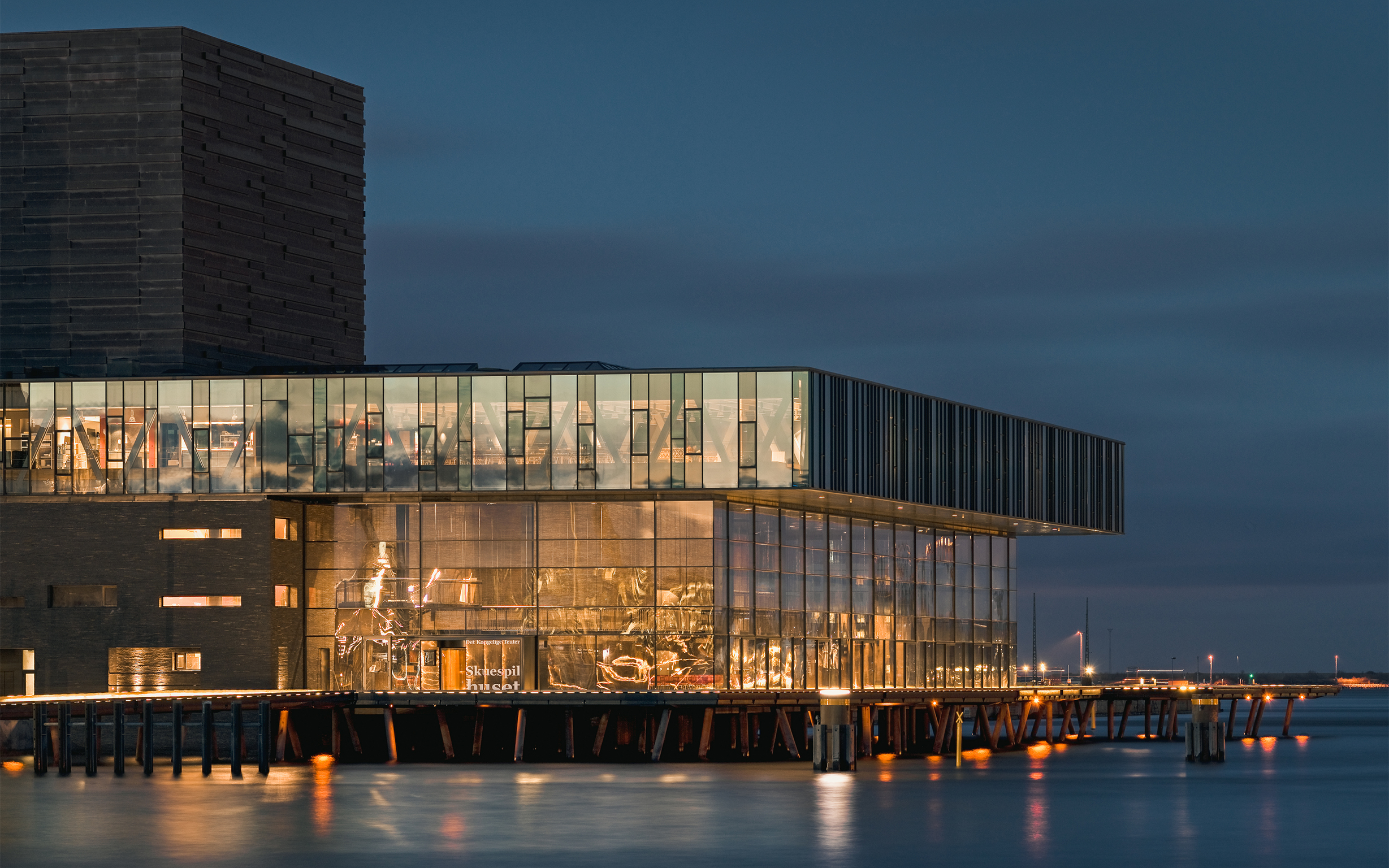 Skuespilhuset er placeret med knapt halvdelen af bygningsmassen ude i havnen, dels på en ny opfyldning og dels på fritstående pæle. Adgang til teatrets foyer sker fra egetræs promenadedæk, stående på såkaldte venetianske pæle. Bygningen ventileres i stor udstrækning ved naturlig ventilation og køles med havvand, der pumpes ind fra havnen uden for.