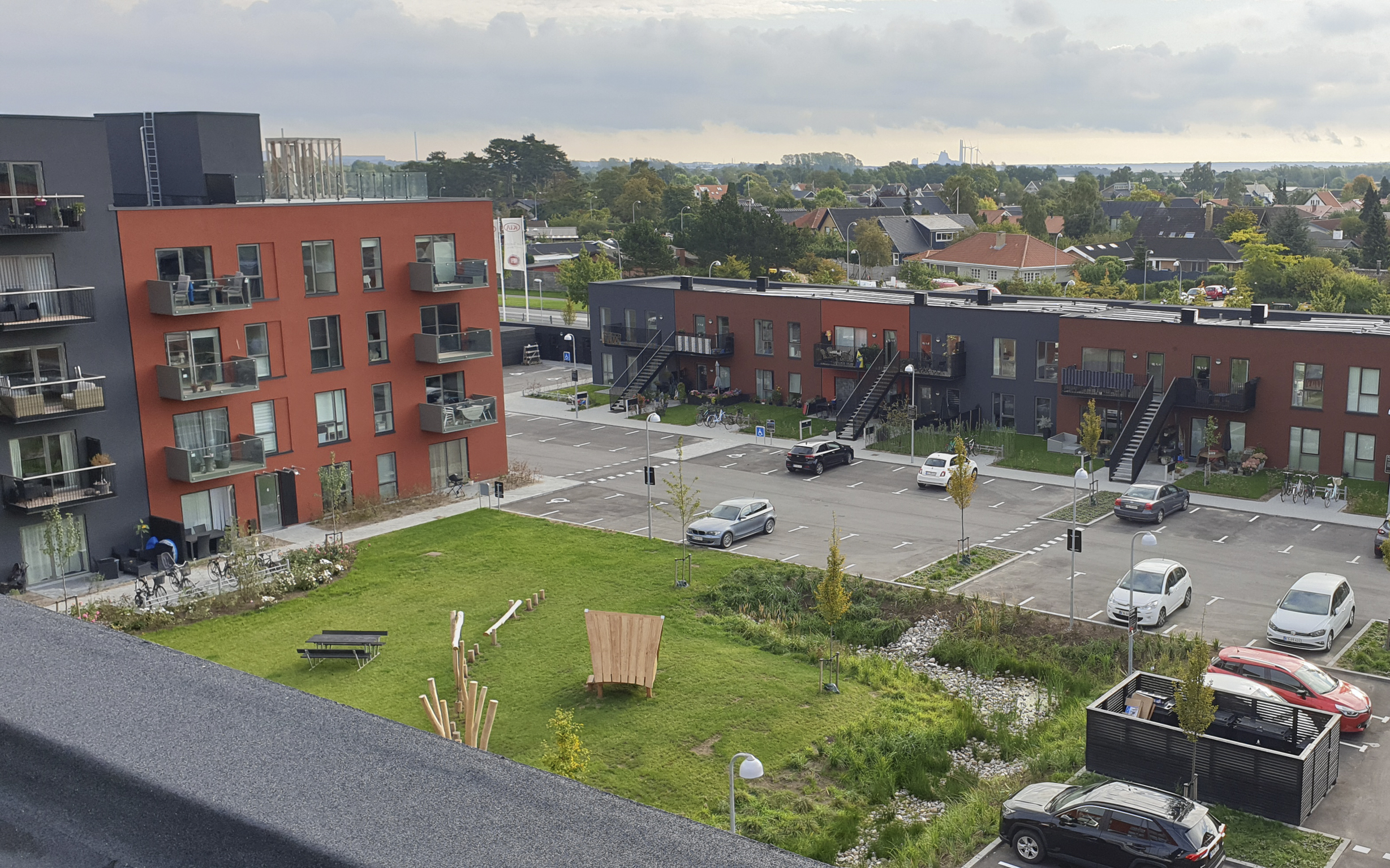 Grønt friareal med biodiversitet og plads til leg